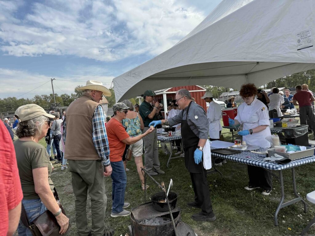 Across the round-up camp, next to the Bar U show arena, chefs and student teams built their own fires and cooked chili entirely from scratch, working with cast-iron pots, limited ingredients, and plenty of creativity. Wood-fired Alberta beef simmered tantalizingly in every pot, drawing the attention of passersby eager for a taste.