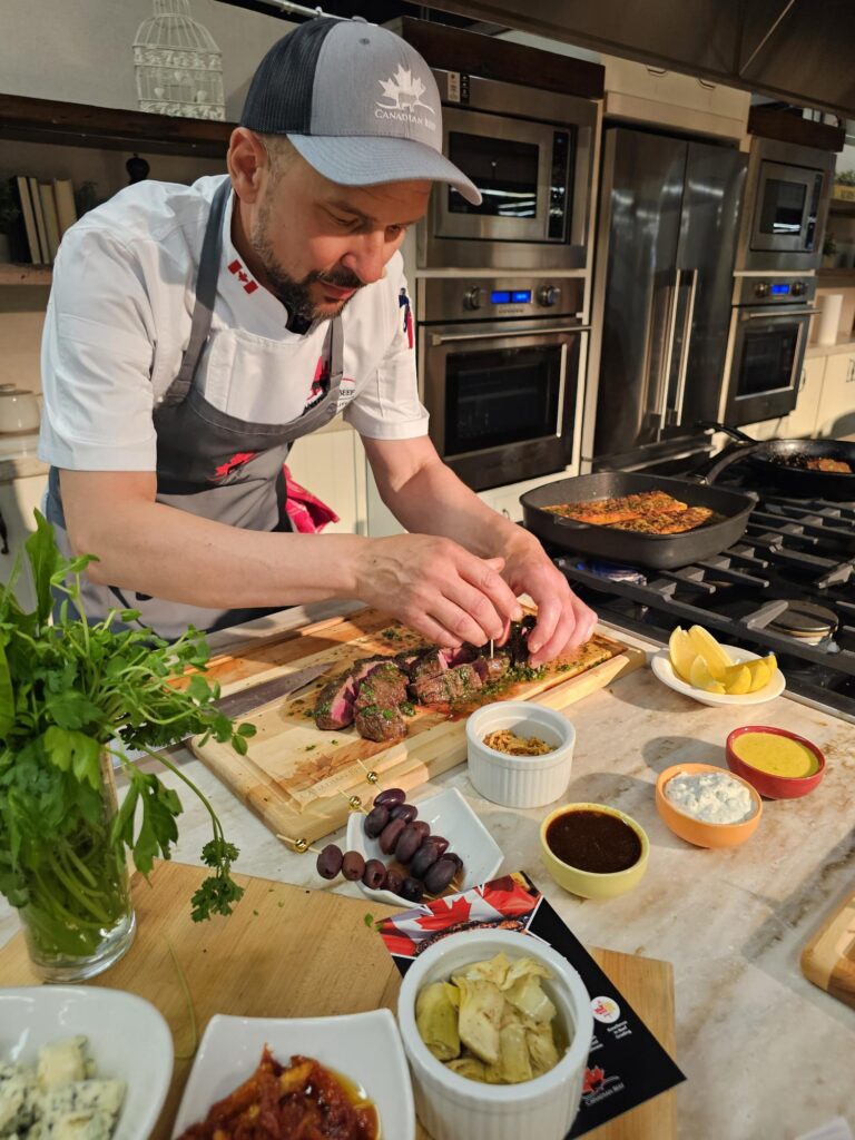 Canadian Beef Centre of Excellence Executive Director Mathieu Paré used top sirloin cap, a favourite economical cut, to create Grilled Steak Dippables, a Gateway recipe which won Alberta Beef Producer’s culinary competition at the Calgary Stampede Kitchen Theatre this year.