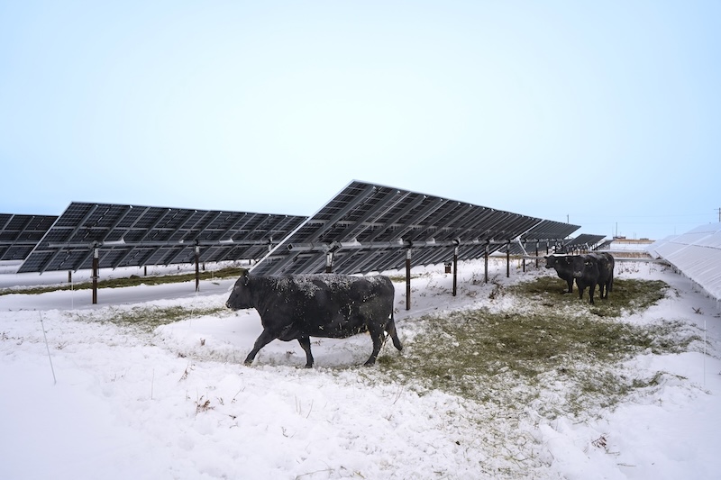 “People refer to it as the Holy Grail of agrivoltaics. So it’s pretty damn big, and we’re seeing it work at scale in the U.S. My for-profit company, Good Energy Partners, has two cattle voltaic projects in the works, one in Alberta and one in Ontario. And we’ve been working with a group out of the U.S. called Huwa, who are operating hundreds of megawatts of cattle voltaic projects. So we’ve been leaning on them to help us with the design of cattle-friendly agrivoltaic systems. According to them, there is a much smaller requirement of additional capital expenditure than most people would think,” adds Gossage.